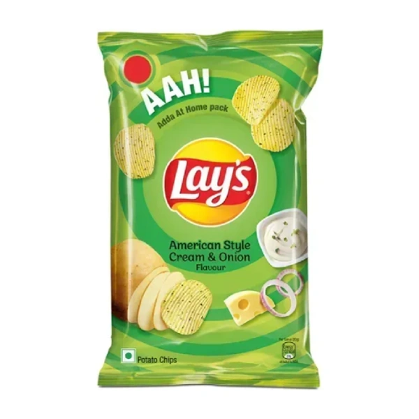 Enjoy a deliciously smooth and savoury snack with Lay’s American Style Cream & Onion Potato Chips. Made from carefully selected quality potatoes and seasoned with a rich blend of cream and onion flavours, these chips offer the perfect balance of crunch and taste in every bite. Light, crispy, and evenly seasoned, they are ideal for satisfying mid-day or evening snack cravings.
