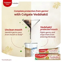 A Clean Mouth means a Healthy You. Your mouth is a host to germs. Colgate Vedshakti Toothpaste fights germs in the mouth itself. Its unique formula has been created with these 5 ingredients: Neem known to have gum care benefits, Clove known for strengthening, Amla known for its anti-ger properties, Tulsi for freshness & Honey for gum massage. Colgate is Indias Most Trusted oral care brand and is the certified by Indian Dental Association. This toothpaste is 100% vegetarian and Gluten free. This toothpaste is made in India, in our manufacturing unit that is awarded with True Zero Waste Platinum Certification.