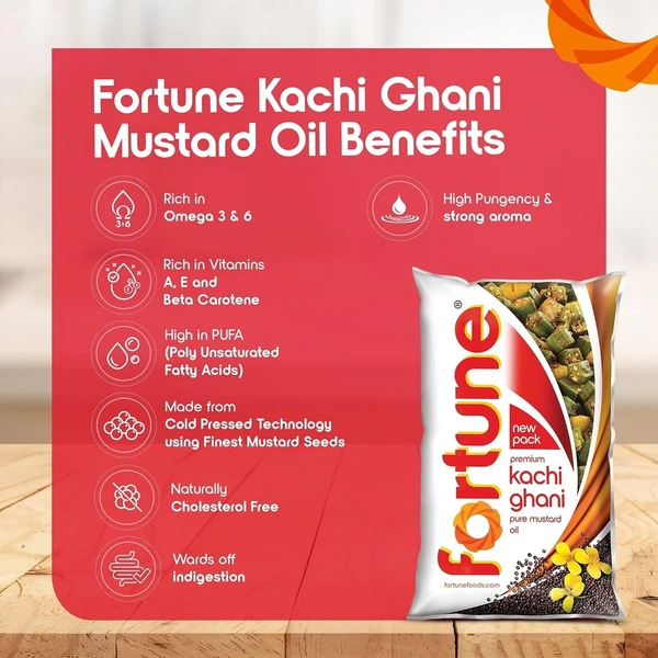 Fortune Premium Kachi Ghani Pure Mustard Oil, 1 ltr pouch