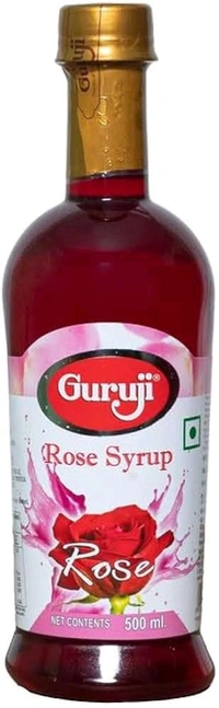 Guruji Rose Syrup (500ml) Dry Fruit Syrup Juice Natural Flavors | Ideal for Cocktails, Mocktails, Desserts & Beverages 500ml