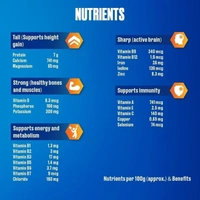 INGREDIENTS: Cereal Extract (44%) [Malted Barley (13%), Barley (11%), Wheat Malt (11%), Wheat (9%)], Sugar, Cocoa Powder (6%), Wheat Gluten, Minerals, Milk Solids (2%), Soy Protein Isolate, Emulsifier (INS 471), Liquid Glucose, Natural Colour (INS 150c), Nature Identical Flavouring Substances, Acidity Regulators [INS 501 (ii), INS 500 (ii)], Vitamins, Edible Iodized Salt