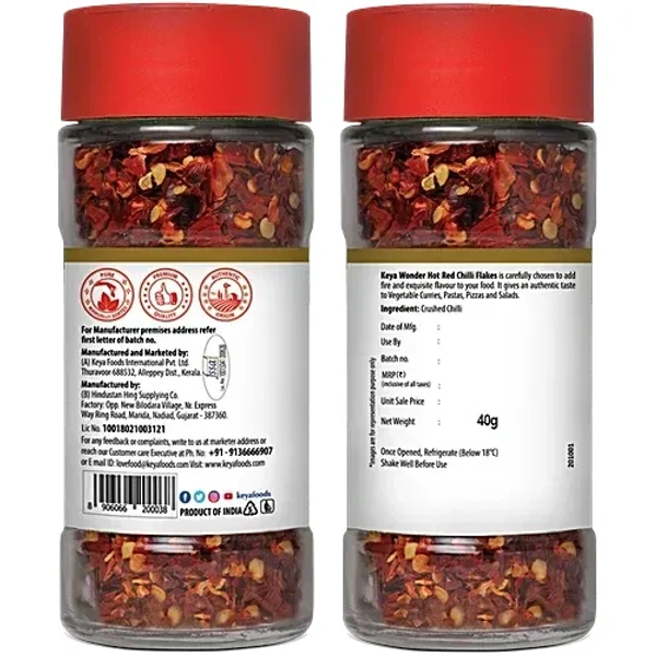 Keya Red Chilli Flakes, 40 g Bottle