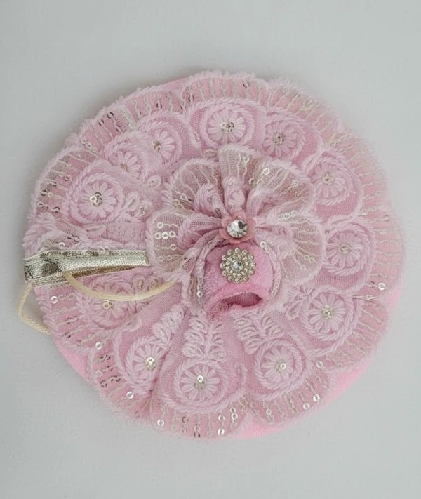 Laddu Gopal Dress Size No. 5 – Pink Janmashtami Poshak Set with Pagdi | Thakur Ji/Kanha Ji Festival Outfit with Jari, Pearls & Jarkan for Bal Gopal