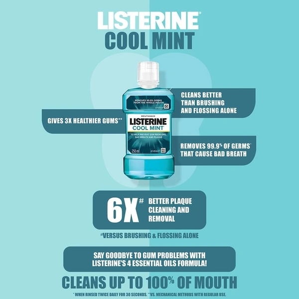 Listerine Cool Mint Mouthwash Liquid, Removes 99.9% Germs