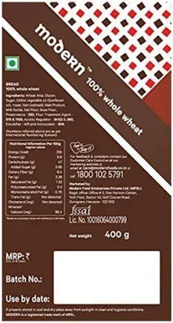 Modern 100% Whole Wheat Bread (Zero Maida) 400g