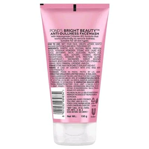 Ponds Bright Beauty Anti-Dullness & Brightening Facewash with Niacinamide | For Glass-Skin Like Shine and with 4X Visibly Brighter Skin, 100gm