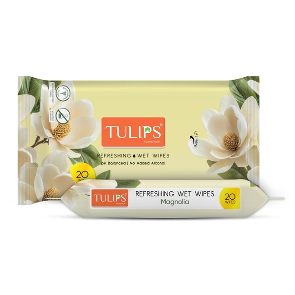 TULIPS Refreshing Wipes in Different Fragrances(Japanese Cherry/Magnolia/Summer Fresh, Pack of 1) with Green Tea Leaf Extract